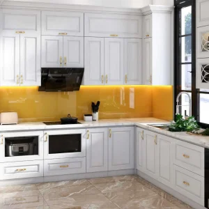 Tủ Bếp An Cường – Chữ L là giải pháp nội thất bếp phù hợp cho căn hộ, nhà phố, biệt thự và bếp mở. Thiết kế hai cạnh vuông góc giúp tận dụng góc bếp, tăng lưu trữ và mở rộng mặt bàn thao tác. Sản phẩm có thể hoàn thiện bằng Melamine, Laminate, Acrylic phủ MDF chống ẩm hoặc HDF, mang lại không gian bếp gọn đẹp và dễ sử dụng lâu dài.